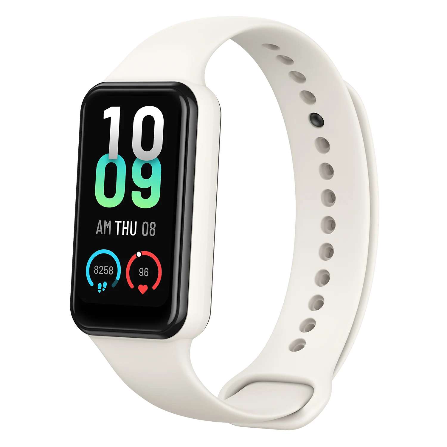 The Amazfit Band 7 is a sophisticated fitness band that merges high-tech features with an elegant design. This fitness band boasts a large 1.47” AMOLED display, ensuring a broad view of your fitness stats such as steps, heart rate, and more. Equipped with a robust step counter watch and heart monitor watch capabilities, it's perfect for tracking daily activity and health metrics with precision. Engineered for long-lasting performance, the Band 7 promises up to an 18-day battery life, minimizing downtime and maximizing activity tracking. With smart recognition of exercises and over 120 sports modes, this fitness band adapts effortlessly to any workout routine, whether running, cycling, or swimming, underlining its water resistance with a 5 ATM rating.Â