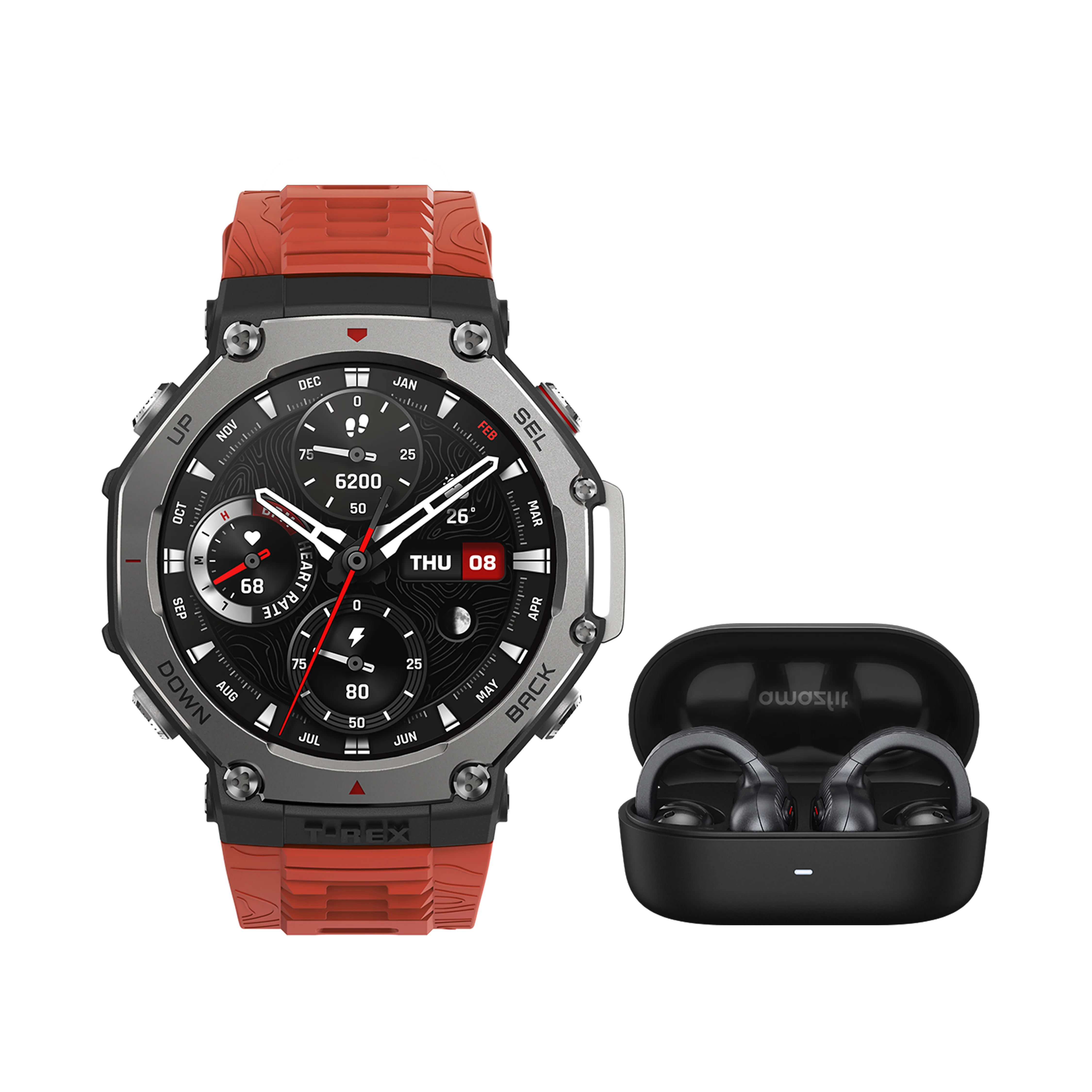 T-Rex 3 is a rugged outdoor smartwatch for outdoor and fitness athletes. Engineered to endure with over 3 weeks of battery life, it withstands temperatures from 158°F to -22°F, and waterproof to 328 feet. The 1.5 inch face features a bright 2,000 nit screen to display GPS maps, workout data, and sleep recovery information. T-Rex 3 has best-in-class data privacy and GPS disablement for total privacy, and convenient AI guided voice control for easy adjusting of watch settings and speech-to-text message replies.